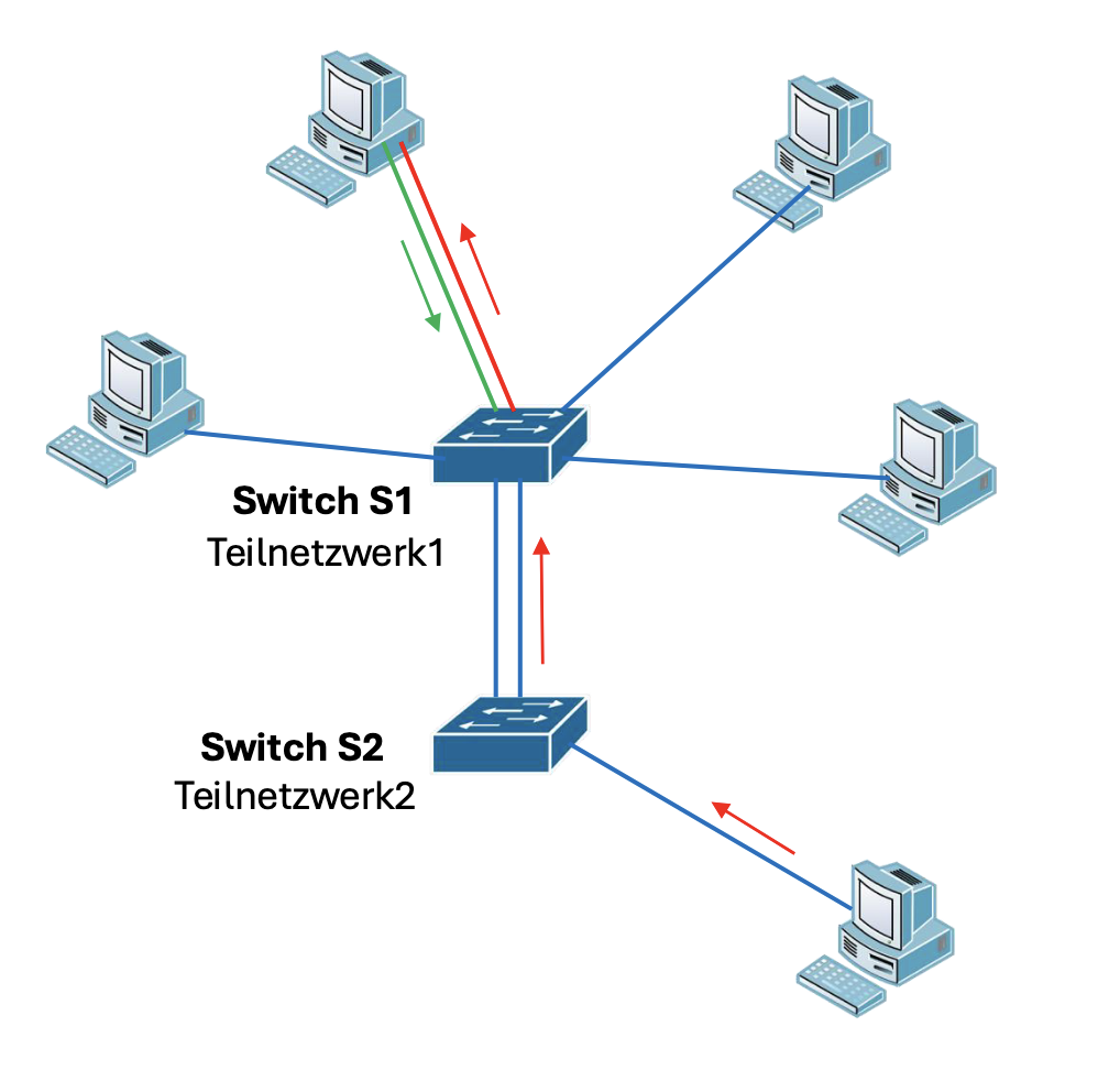 - Sonst: Flooding → Frame an alle Interfaces weiterleiten, die nicht das Eingangsinterface sind