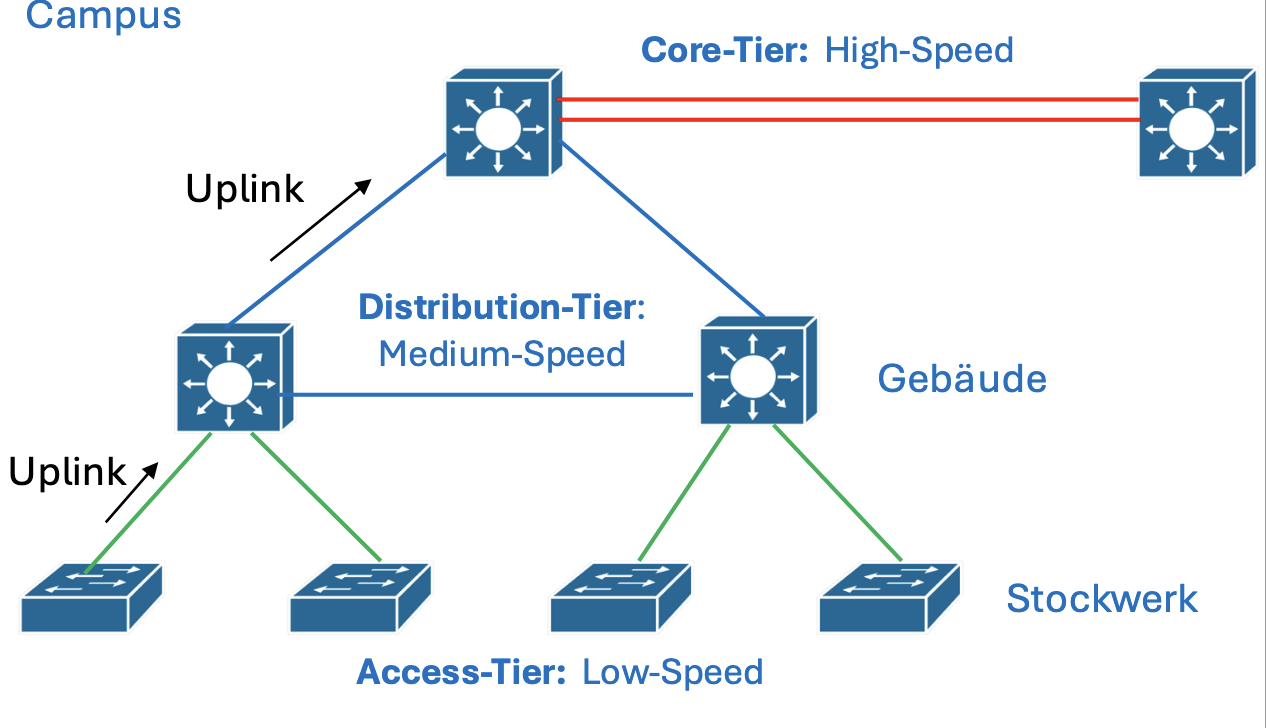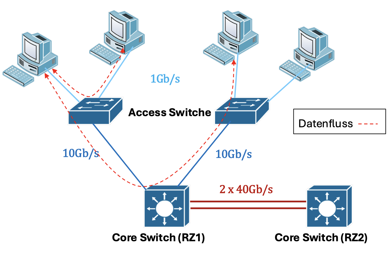 - Moderne Architektur aus Stern-Topologien erfordert redundante Verbindungen, um für den Ausfall eines Switches zu kompensieren