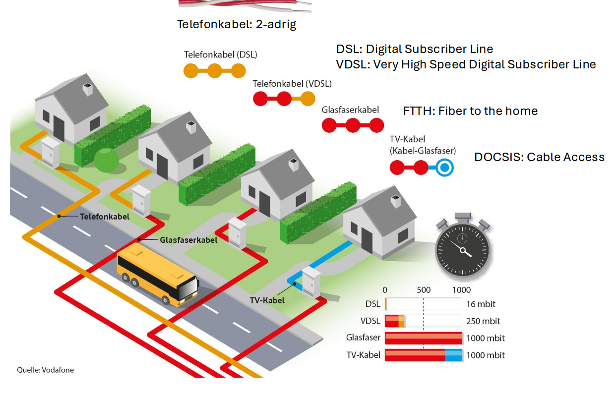 Kabelgebundene Übertragungskanäle basieren auf elektrischen oder optischen Leitungen. Vorteile: