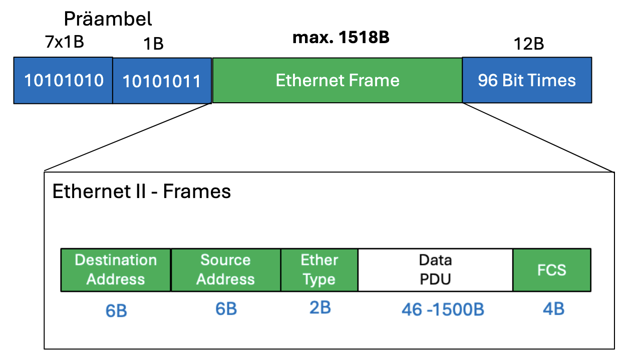- Vor das Ether Type-Feld wird ein 4 Byte großes Headerfeld eingeschoben