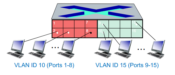 - Bei Port-Based VLAN erhält jeder Port eine VLAN ID, die ein eigenes Subnet darstellt.