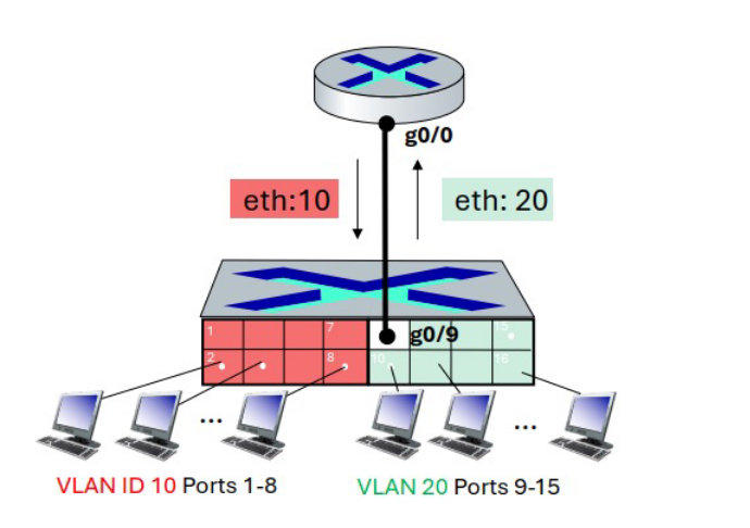 - Physikalische Port des Routers verwendet für jedes VLAN ein virtuelles Sub-Interface