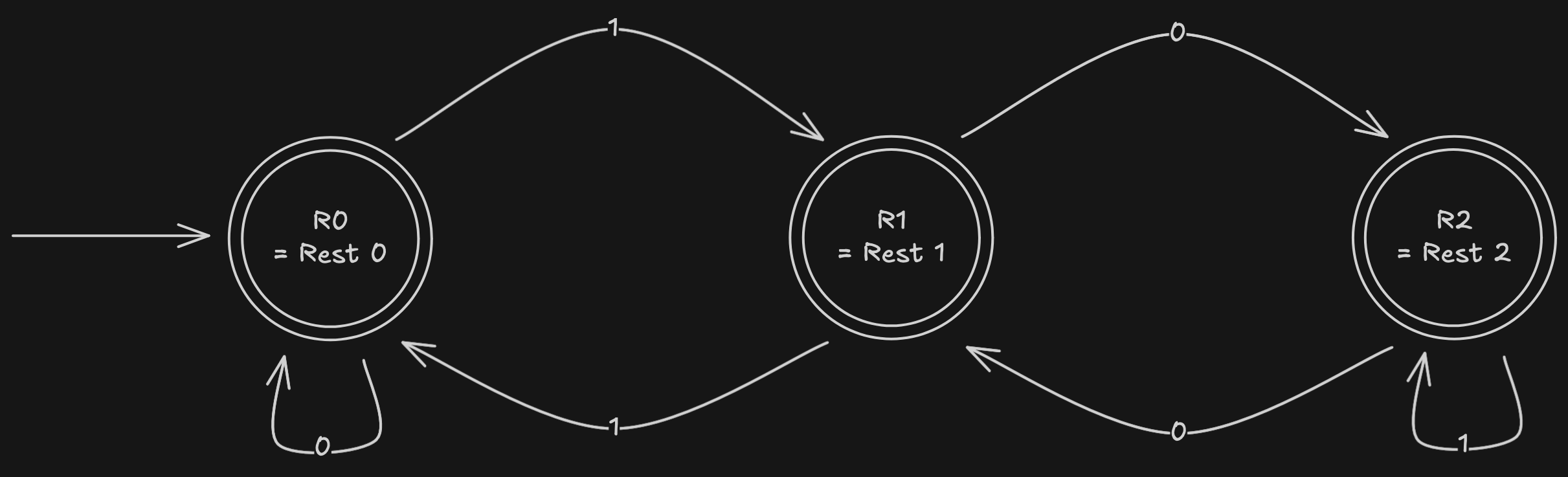Beispiel zu einem Mealy-Automat zur Berechnung des Modulo 3: