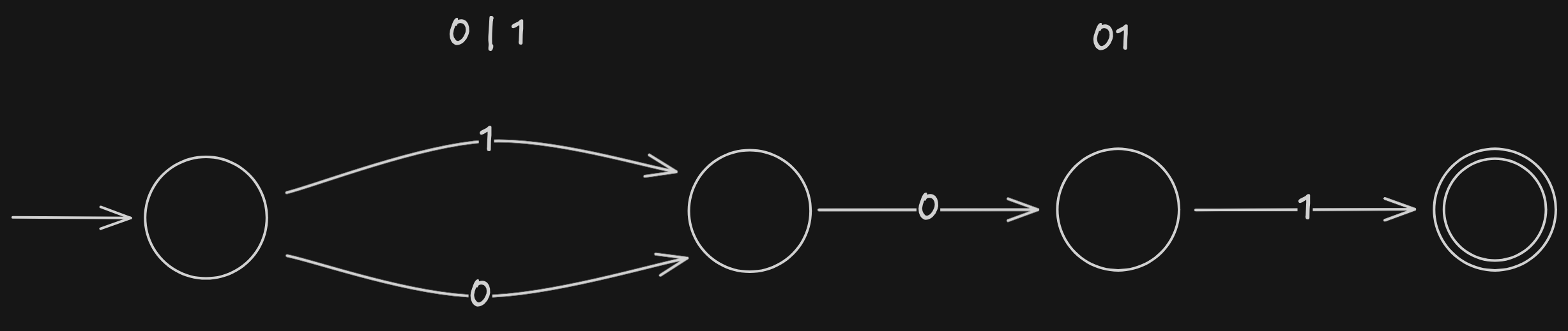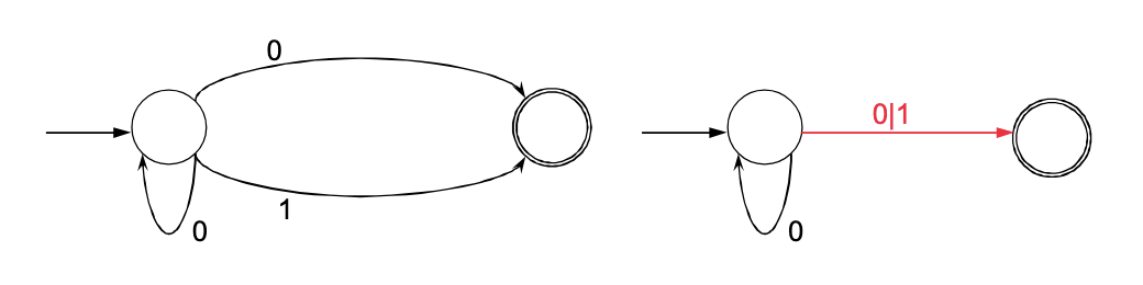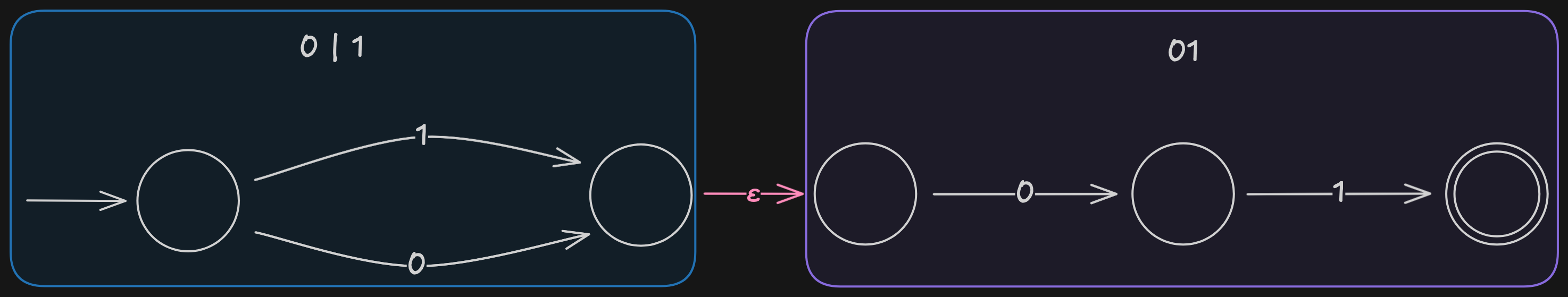 Es ist auch möglich, die Automaten zwei regulĂ€rer AusdrĂŒcke zu verknĂŒpfen. Formell wird dies mit dem leeren Wort gemacht: