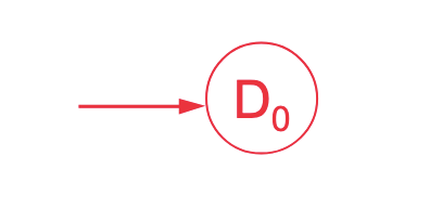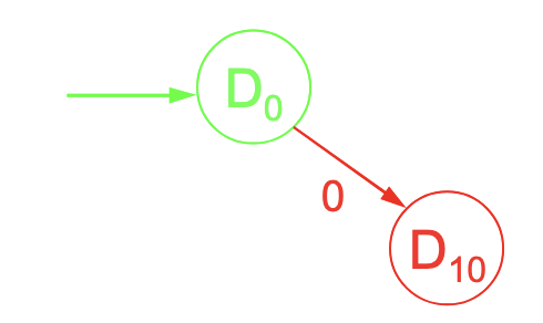 Die ZustĂ€nde des Automaten sind als Kreise dargestellt. Die ĂbergĂ€nge zwischen den Kreisen sind die Pfeile, die Eingaben, die zum Ăbergang fĂŒhren, sind die Symbole an den Pfeilen. Der Startzustand ist der Kreis mit dem Eingangspfeil, der Endzustand der Doppelkreis.