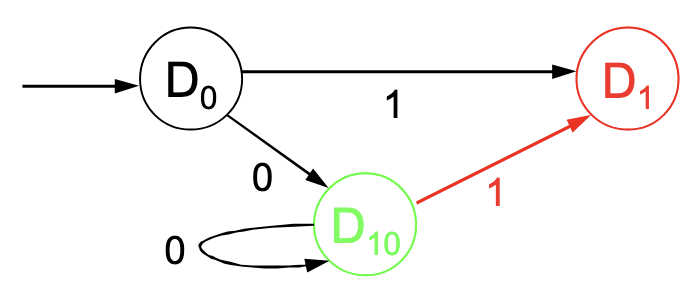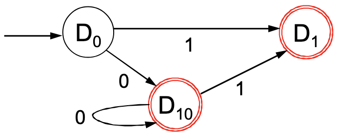 Wenn eine Eingabe komplett gelesen ist und der Zustandsspeicher einen Endzustand enthÀlt ist die Zeichenfolge akzeptiert.