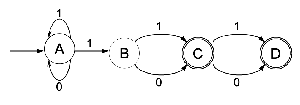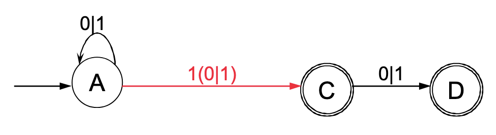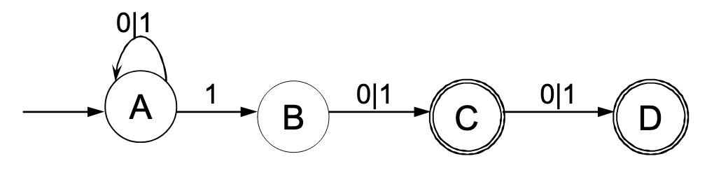Die Eingabe der Ăbergangsfunktion ist ein Paar bestehend aus dem aktuellen Zustand und dem gelesenen Symbol . Die Ausgabe ist genau ein Folgezustand .